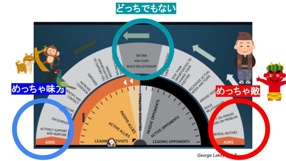 *ちなみに桃太郎のメタファーを使っているので暫定的に「敵」という言葉を使っているが、ぶっそうなので、単に「反対派」でもいいだろう。